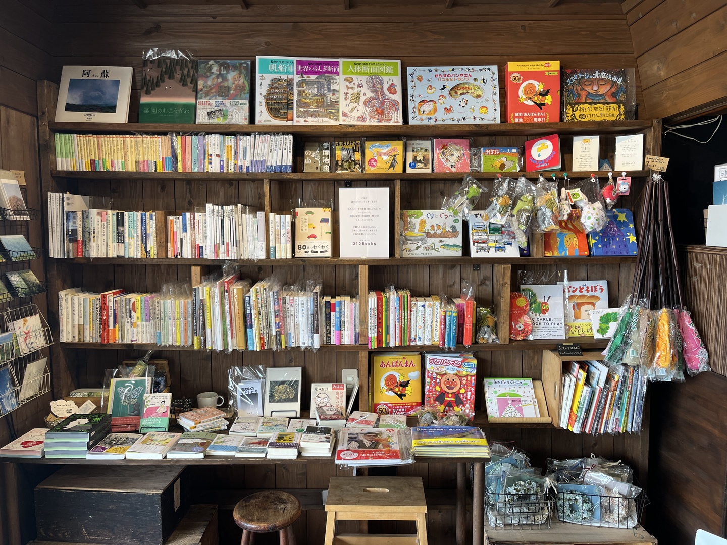 310Books(サンイチゼロブックス)は、熊本県南阿蘇村の道の駅「あそ望の郷くぎの」内にある、16坪ほどの小さな本屋カフェです。新刊書籍の販売のほか、南阿蘇の地下水を使用した自家焙煎ハンドドリップコーヒーなどのお飲み物や手作りマフィンなどの軽食をご用意しております。